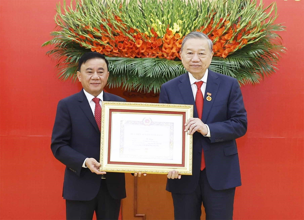 Tổng Bí thư Tô Lâm bày tỏ, được trao tặng Huy hiệu 45 tuổi Đảng - một phần thưởng cao quý, đúng vào dịp kỷ niệm 96 năm Ngày thành lập Đảng Cộng sản Việt Nam quang vinh là niềm vinh dự lớn lao đối với cá nhân đồng chí và gia đình. Đây là sự ghi nhận của Đảng đối với quá trình phấn đấu, rèn luyện và cống hiến của một đảng viên trong suốt chặng đường dài gắn bó với sự nghiệp cách mạng của Đảng và dân tộc.