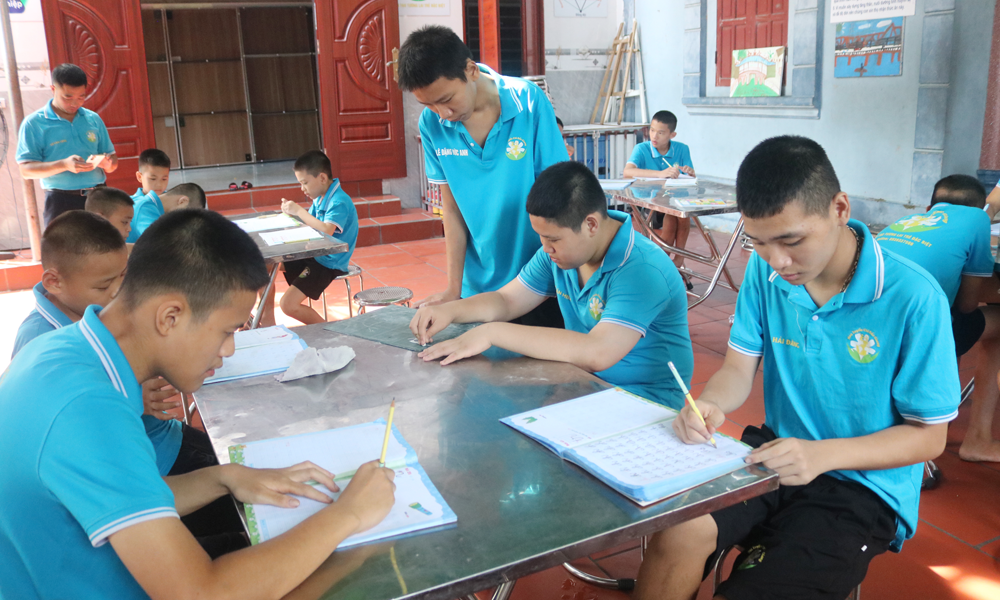 Những cậu bé ở Trung tâm Hoa Xuyến Chi say sưa viết chữ. |