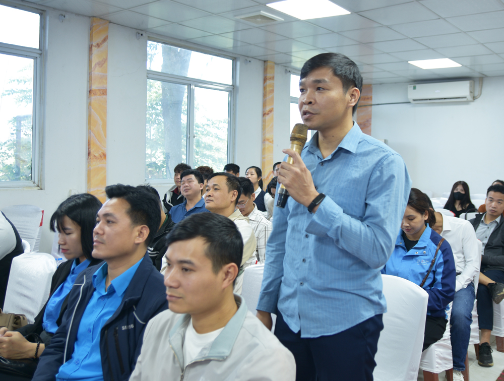 Cán bộ công đoàn cơ sở khu công nghiệp Yên Phong đóng góp ý kiến tại hội nghị. |