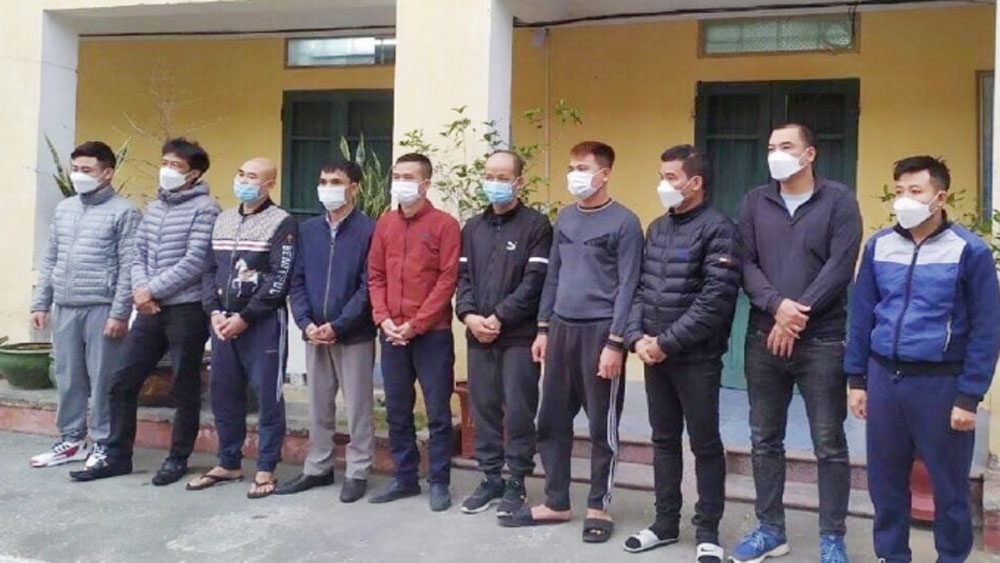 Các đối tượng bị khởi tố, tạm giữ để điều tra hành vi đánh bạc. Ảnh: TTXVN. |