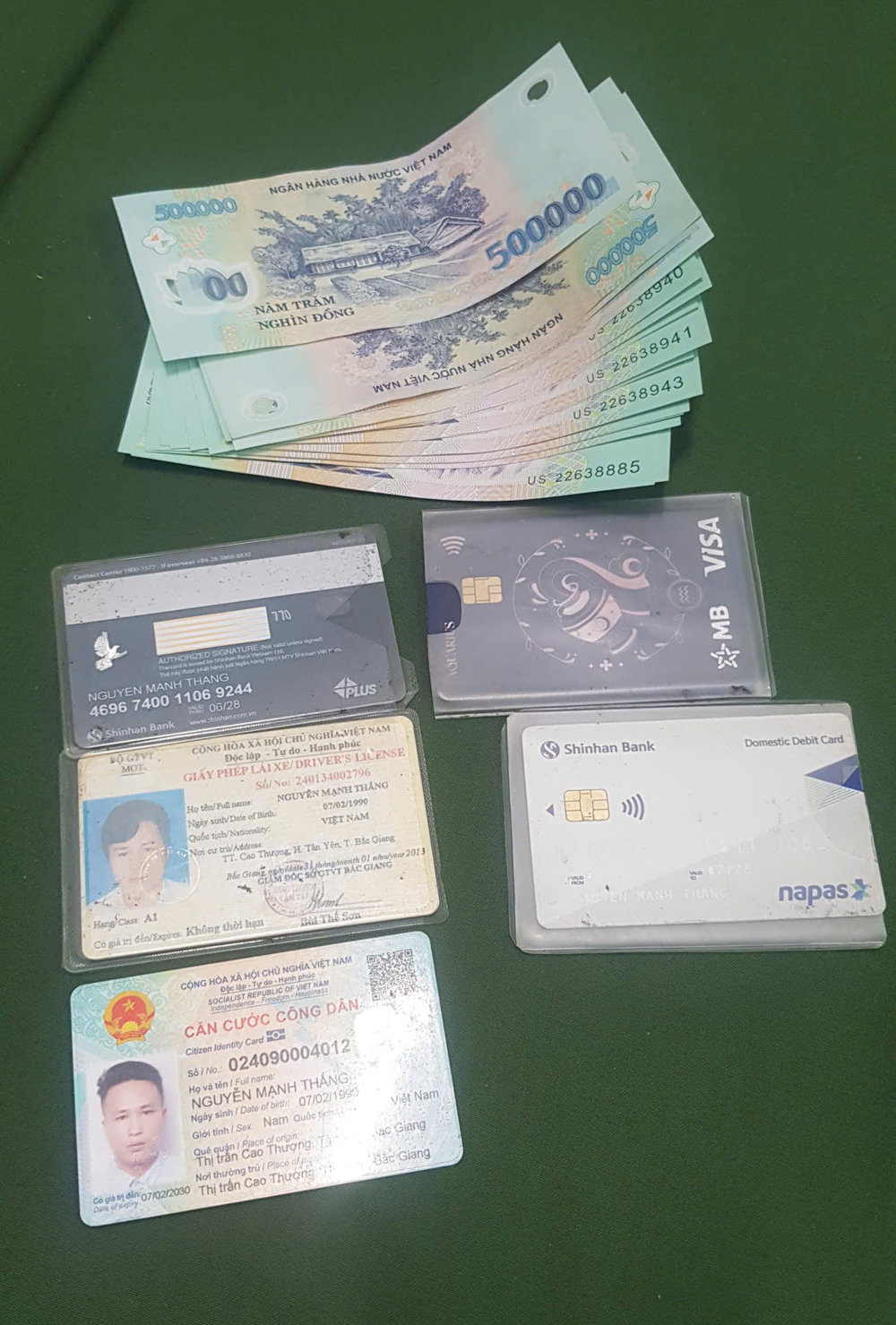 Tài sản anh Nguyễn Mạnh Thắng đánh rơi đã nhận lại. |