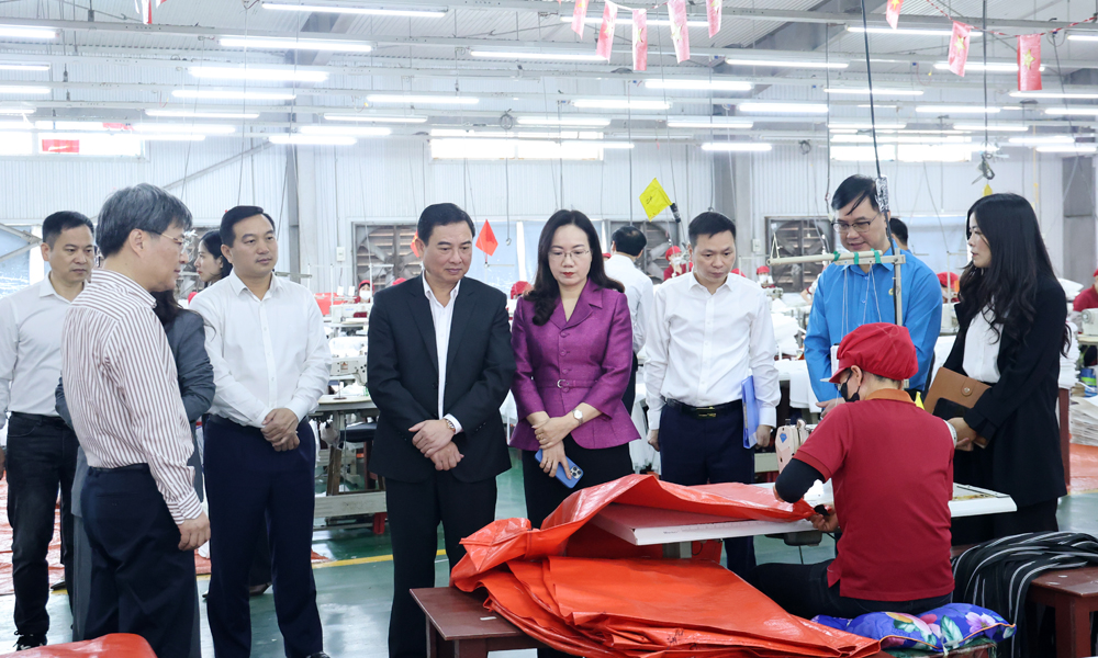 Tại buổi làm việc, lãnh đạo các doanh nghiệp báo cáo nhanh tình hình sản xuất, kinh doanh. Theo đó, Công ty trách nhiệm Khải Thừa (thành lập năm 2007) và Công ty trách nhiệm hữu hạn Khải Thần (thành lập năm 2013), chuyên sản xuất bao bì nhựa, tạo việc làm cho gần 2 nghìn lao động. Trải qua quá trình xây dựng và phát triển, các doanh nghiệp duy trì hoạt động ổn định, bảo đảm việc làm thường xuyên cho người lao động; doanh thu, sản lượng cơ bản đạt và vượt kế hoạch. Thu nhập bình quân đạt từ 10 - 15 triệu đồng/người/tháng.