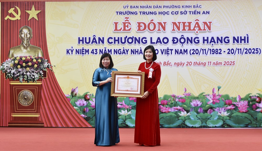BẮC NINH - Ngày 20/11, Trường Trung học cơ sở Tiền An (phường Kinh Bắc) tổ chức Lễ Kỷ niệm 43 năm Ngày Nhà giáo Việt Nam 20/11 (1982 - 2025) và đón nhận Huân chương Lao động hạng Nhì.