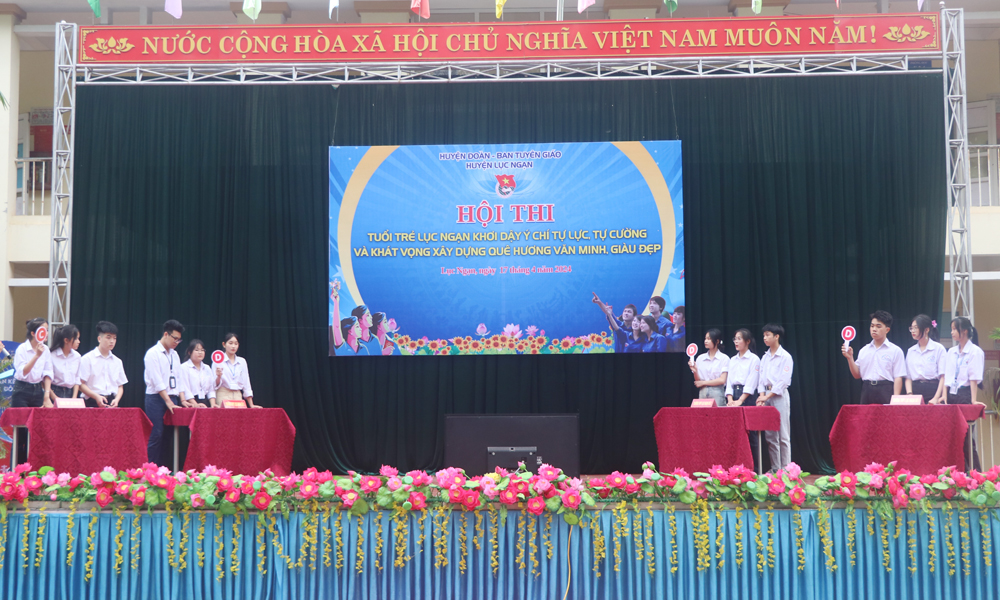 BẮC GIANG - Sáng 17/4, tại Trường THPT Lục Ngạn số 1, Ban Tuyên giáo Huyện ủy Lục Ngạn (Bắc Giang), Huyện đoàn phối hợp tổ chức hội thi “Tuổi trẻ Lục Ngạn khơi dậy ý chí tự lực, tự cường và khát vọng xây dựng quê hương văn minh, giàu đẹp” năm 2024.