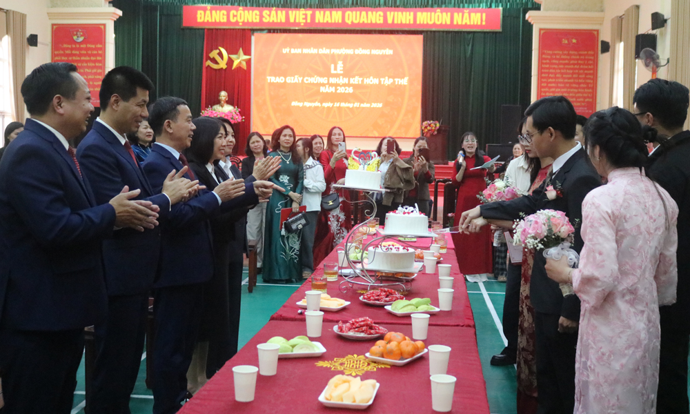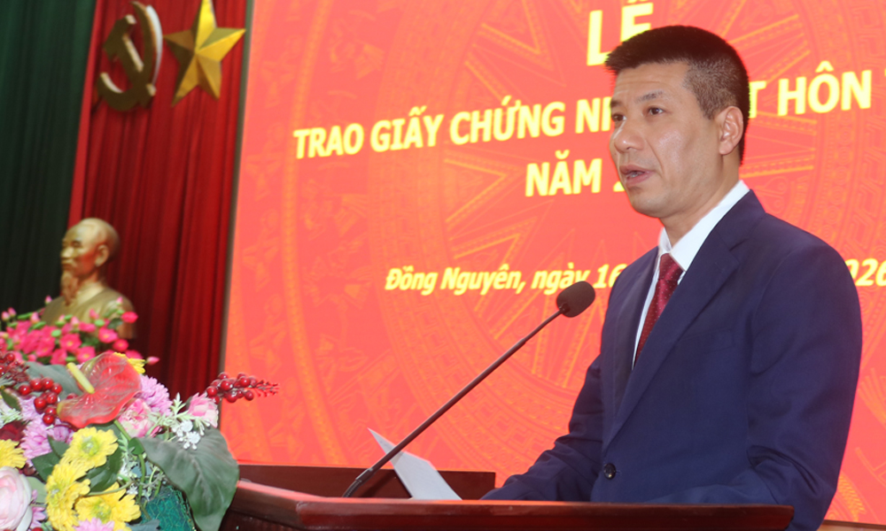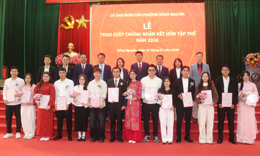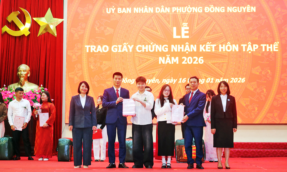 Chúc mừng các cặp tân hôn chính thức trở thành vợ chồng hợp pháp theo quy định của pháp luật, đồng chí Nguyễn Mạnh Cường, Chủ tịch UBND phường Đồng Nguyên nhấn mạnh: Mỗi tấm giấy Chứng nhận đăng ký kết hôn được trao đi thể hiện trách nhiệm pháp lý, cũng là lời chúc chân thành nhất từ chính quyền phường Đồng Nguyên gửi đến các công dân. Chúc các cặp vợ chồng trẻ luôn tuân thủ pháp luật, mạnh khỏe, hạnh phúc, thuận vợ thuận chồng, xây dựng gia đình ấm no, tiến bộ, hạnh phúc và bền vững, làm nền tảng cho cuộc hôn nhân lâu dài và viên mãn, góp phần xây dựng cộng đồng và xã hội văn minh.