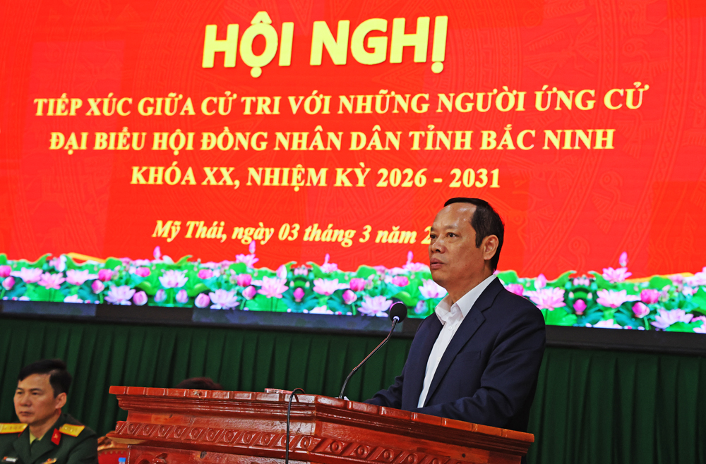 BẮC NINH - Ngày 3/3, Ban Thường trực Ủy ban MTTQ tỉnh Bắc Ninh tổ chức hội nghị Tiếp xúc cử tri với những người ứng cử đại biểu HĐND tỉnh Bắc Ninh khóa XX, nhiệm kỳ 2026 - 2031 tại xã Tiên Lục, xã Mỹ Thái.
