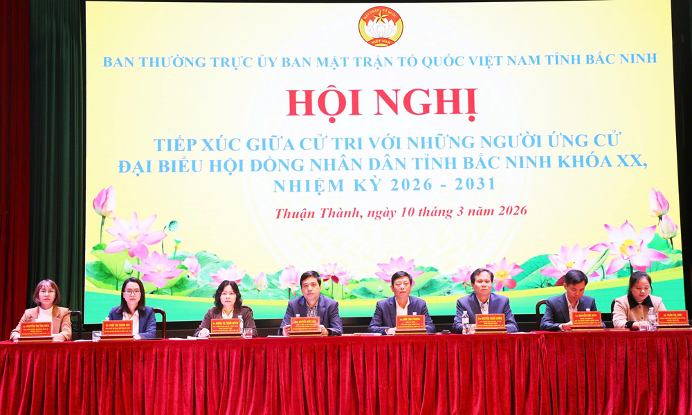 BẮC NINH - Sáng 10/3, Ban Thường trực Ủy ban MTTQ tỉnh tổ chức hội nghị tiếp xúc giữa cử tri với những người ứng cử đại biểu HĐND tỉnh khóa XX, nhiệm kỳ 2026 - 2031 (đơn vị bầu cử số 13) tại phường Thuận Thành.
