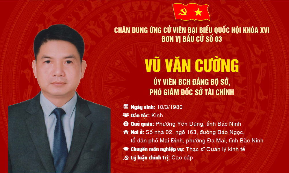 Ứng cử viên Vũ Văn Cường nhấn mạnh việc hoàn thiện cơ chế, chính sách liên quan đến quy hoạch, quản lý đất đai và phát triển đô thị theo hướng lấy người dân làm trung tâm, bảo đảm hài hòa lợi ích giữa Nhà nước, doanh nghiệp và người dân. Tăng cường công khai, minh bạch thông tin quy hoạch, đẩy mạnh chuyển đổi số trong quản lý đất đai để người dân dễ dàng tiếp cận thông tin. Quan tâm đào tạo nghề, tạo việc làm cho người dân sau thu hồi đất; chú trọng công tác quản lý đô thị, cải tạo hạ tầng giao thông và hệ thống thoát nước nhằm nâng cao chất lượng cuộc sống của người dân.