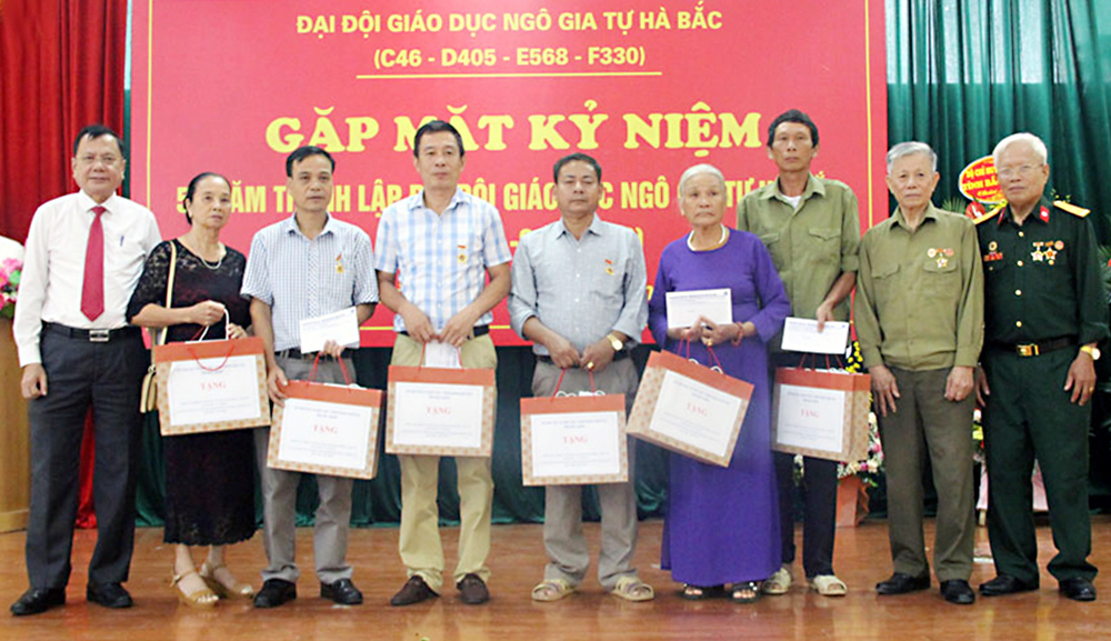 Lãnh đạo Sở Giáo dục và Đào tạo trao quà cho gia đình các thầy giáo - chiến sĩ Đại đội Giáo dục Ngô Gia Tự Hà Bắc. |