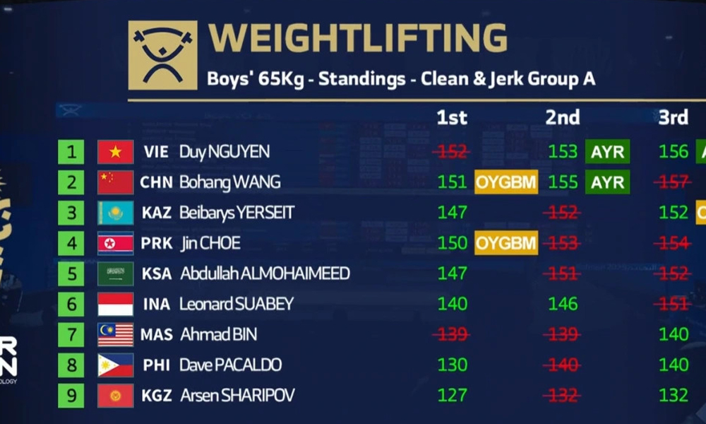 Kết quả nội dung cử đẩy hạng 65kg nam. |
