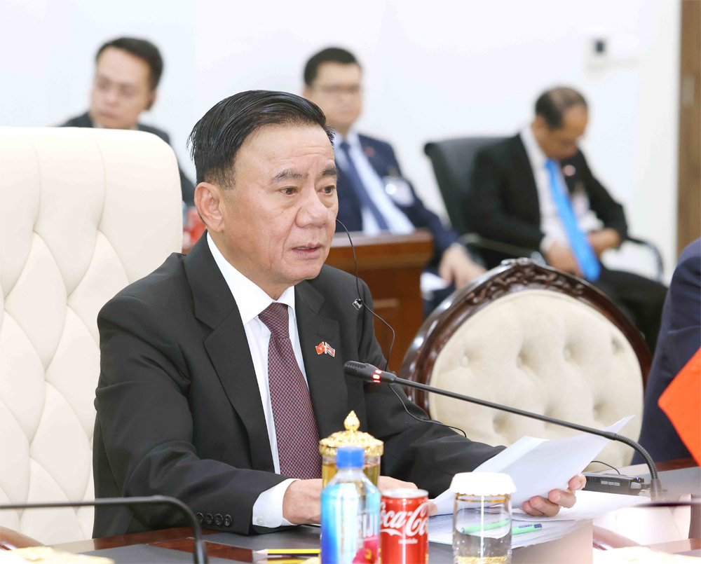 Phó Chủ tịch, Trưởng Ban Thường trực Ban Thường vụ Đảng Nhân dân Campuchia Say Chhum tại hội đàm. |