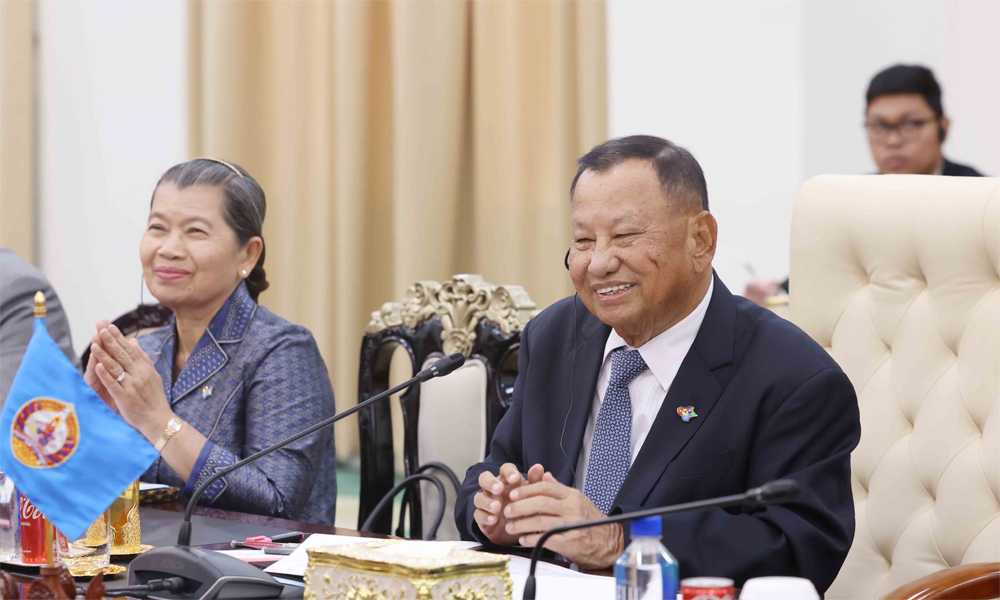 Samdech Say Chhum chúc mừng những thành tựu to lớn, toàn diện mà Việt Nam đã đạt được trong thời gian qua, nhất là đã tổ chức thành công Đại hội đại biểu toàn quốc lần thứ XIV của Đảng Cộng sản Việt Nam, bầu cử Quốc hội khóa XVI và kiện toàn các chức danh lãnh đạo chủ chốt.