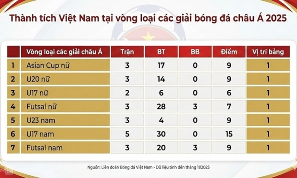 Việt Nam là đội duy nhất ở Đông Nam Á vượt qua toàn bộ vòng loại các giải châu Á năm 2025. Trong khi đó, kình địch Thái Lan thất bại ở vòng loại Asian Cup nữ.