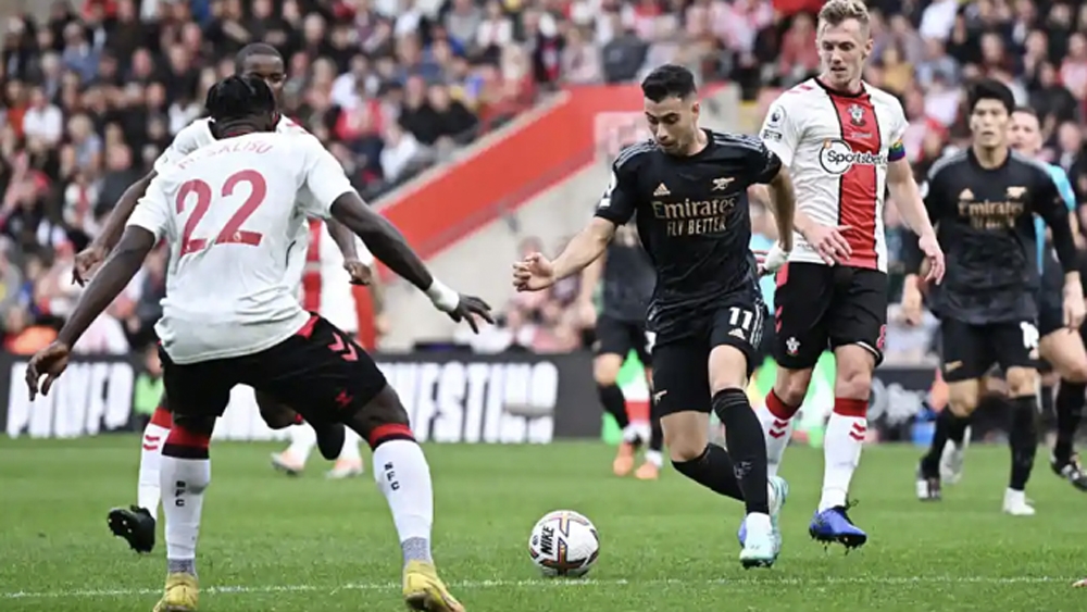 Arsenal mở tỷ số ngay pha tấn công nguy hiểm đầu tiên. Phút 5, Bukayo Saka treo bóng tầm thấp vào vòng cấm để Gabriel Martinelli băng cắt đánh đầu vào góc gần, đứt chuỗi năm trận tịt ngòi. Với 21 tuổi 55 ngày, Bukayo Saka là cầu thủ trẻ thứ ba cán mốc 20 kiến tạo tại Ngoại hạng Anh, sau Cesc Fabregas (19 năm 352 ngày) và Wayne Rooney (20 năm 300 ngày).