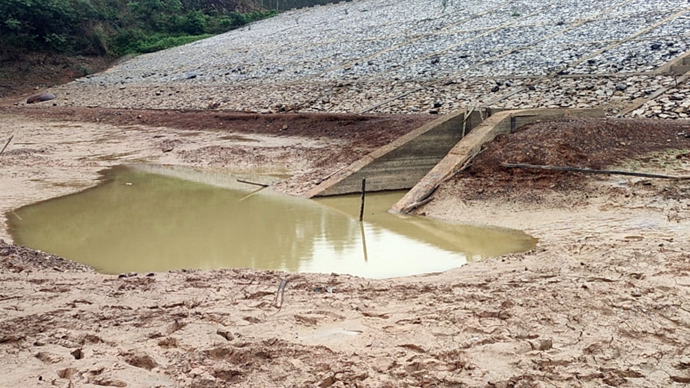 Mực nước tại hồ Khe Hắng (Sơn Động) dần cạn kiệt. |