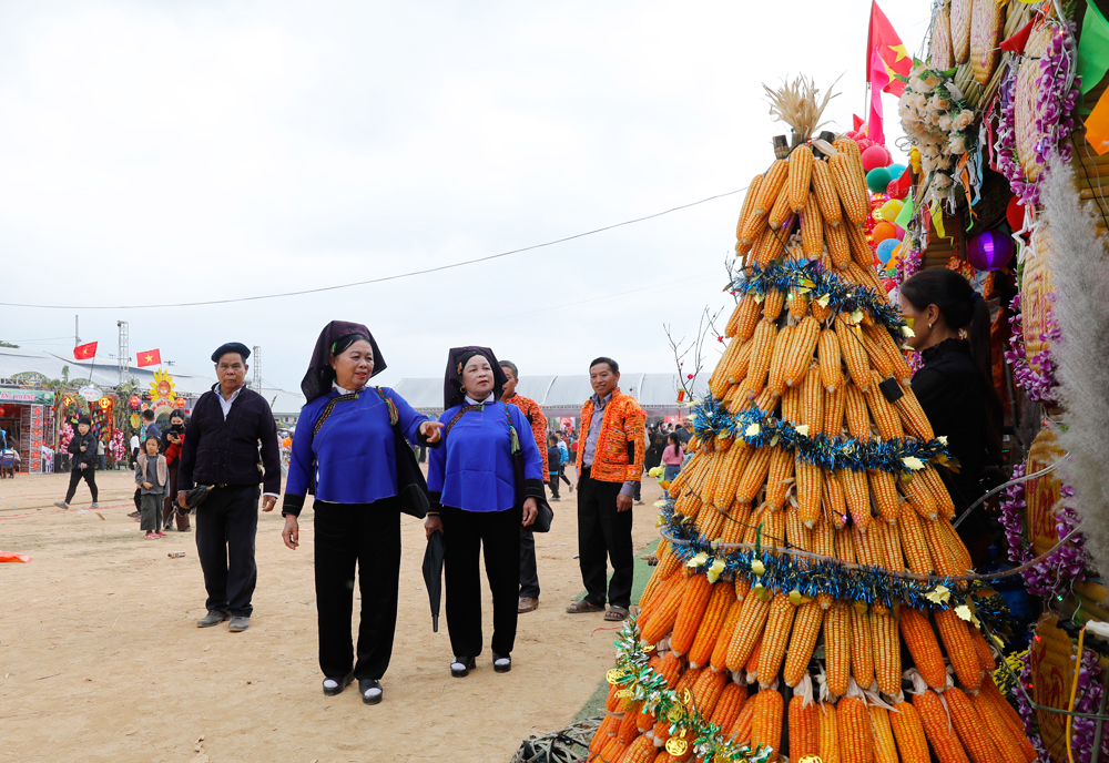 Khu tổ chức lễ hội có 19 gian hàng trưng bày, giới thiệu nông sản chủ lực của địa phương. |