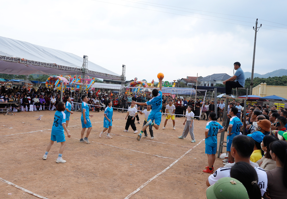 Trong khuôn khổ Ngày hội còn diễn ra các môn thi đấu thể thao hấp dẫn. Ảnh: Một trận thi đấu bóng chuyền hơi. |
