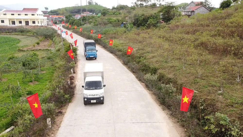 Các tuyến đường vào trung tâm xã Đại Sơn trang hoàng cờ hoa rực rỡ. |