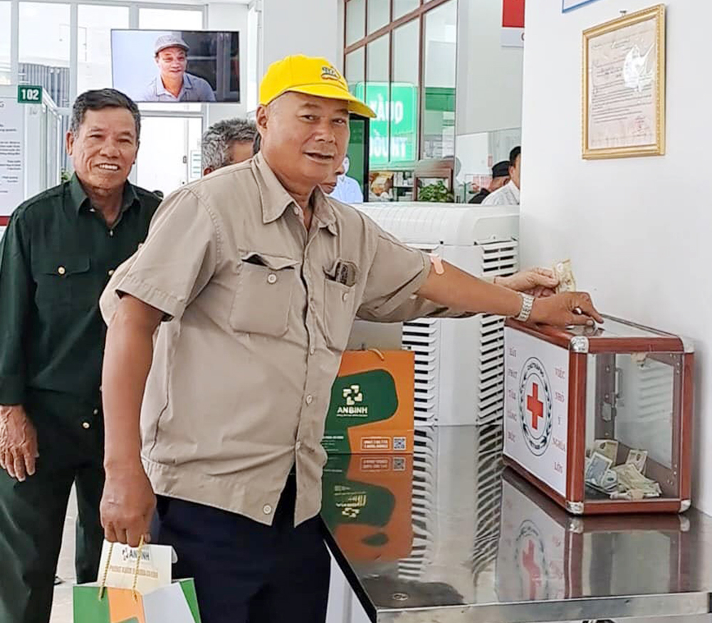 Người dân ủng hộ quỹ nhân đạo của Hội CTĐ đặt tại Phòng khám Đa khoa An Bình (thị xã Việt Yên). |