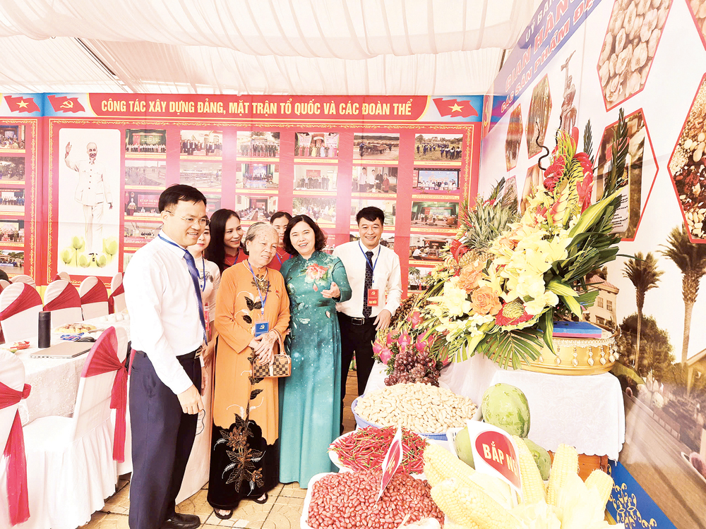 Các đồng chí: Trần Thị Hằng, Ủy viên Ban Thường vụ Tỉnh ủy, Phó Chủ tịch Thường trực HĐND tỉnh; Phạm Công Toản, Bí thư Đảng ủy, Chủ tịch HĐND xã Kép cùng cán bộ, đảng viên thăm gian trưng bày nông sản địa phương nhân dịp Đại hội Đảng bộ xã lần thứ I. |