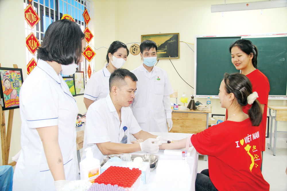 | Khám sức khỏe, sàng lọc bệnh tan máu bẩm sinh cho học sinh đang theo học tại các trường trên địa bàn xã Kiên Lao. |