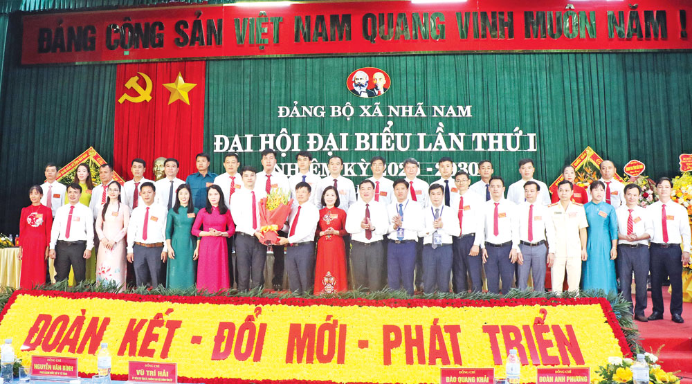 Các đồng chí lãnh đạo tỉnh chúc mừng Ban Chấp hành Đảng bộ xã Nhã Nam, nhiệm kỳ 2025-2030. |