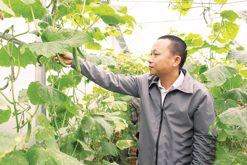 Mô hình trồng dưa leo baby theo quy trình VietGap của HTX dịch vụ nông nghiệp tổng hợp Xuân Mai (thôn Hương Triện) cho thu nhập cao. |
