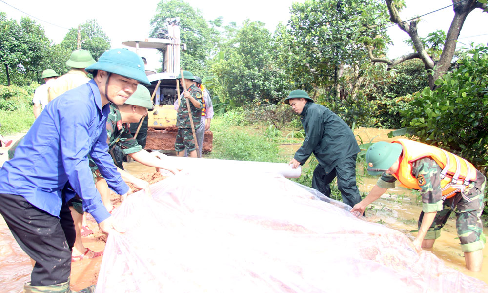 Đến 10 giờ sáng 8/10, xã đã huy động hơn 4 nghìn bao tải dứa, hơn 1 nghìn mét ni-lông và hơn 1 nghìn m3 đất gia cố gần 3,5 km đê hữu Thương qua địa bàn; các vị trí tràn được xử lý kịp thời, bảo đảm an toàn cho người, tài sản.
