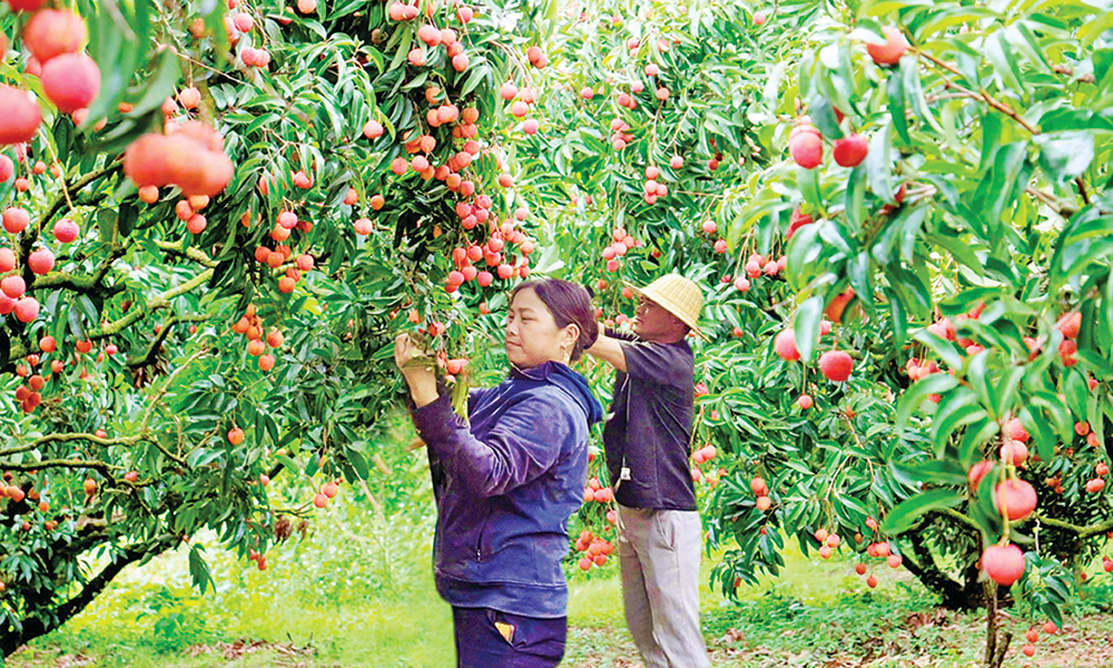 Vải thiều chín muộn là sản phẩm đặc trưng của xã Tân Sơn. |