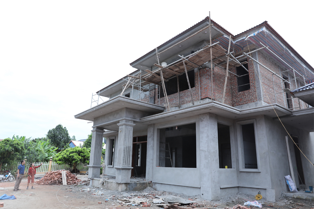 Biệt thự của bà La Thị Hưng, thôn Trại, xã Cao Xá (Tân Yên) đang được thi công. |