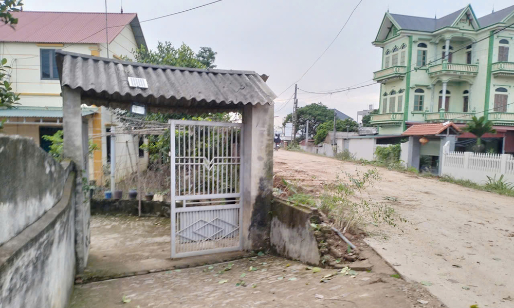 Hộ dân xây nhà xâm phạm vào hành lang đê tả Cầu tại thôn Trung Hưng, xã Hợp Thịnh. |