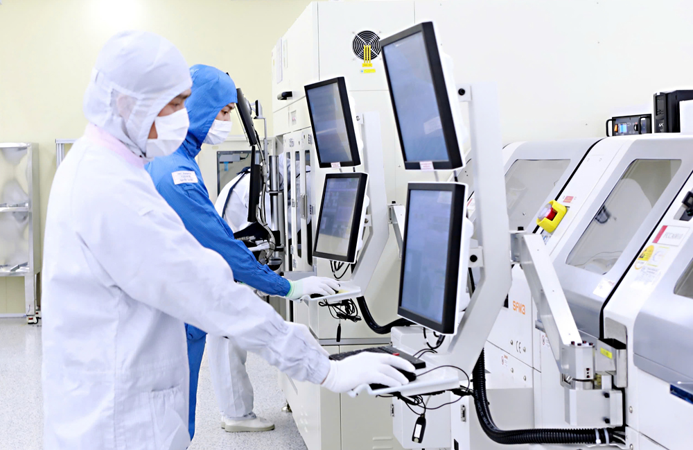 Dây chuyền sản xuất tại Công ty TNHH Hana Micron Vina (KCN Vân Trung). Ảnh: Đỗ Quyên. |