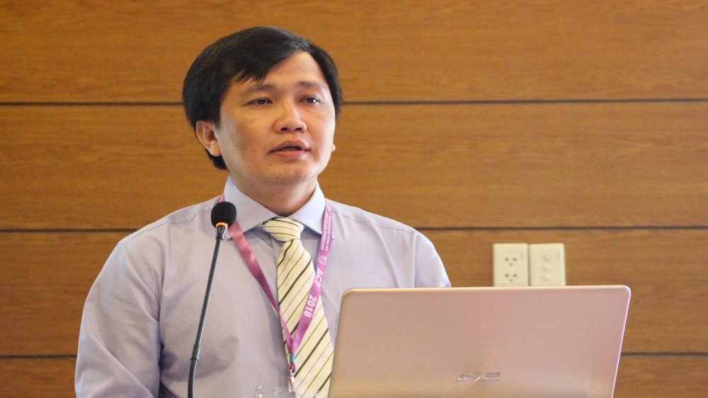 Bác sĩ chuyên khoa II Lê Công Tước, Giám đốc Bệnh viện Sản - Nhi Bắc Giang thăm bệnh nhân vừa được mổ cấp cứu lấy thai do bị nhau tiền đạo hiếm gặp. Ảnh của Hiền Chúc, Bệnh viện Sản - Nhi Bắc Giang. |