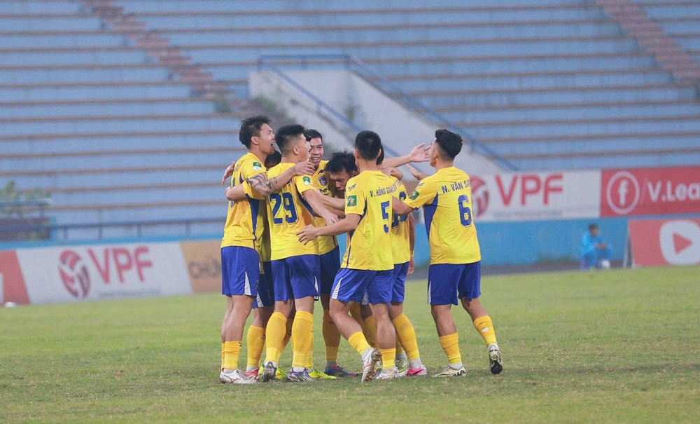 Các cầu thủ Bắc Ninh FC ăn mừng trận thắng cách biệt. |