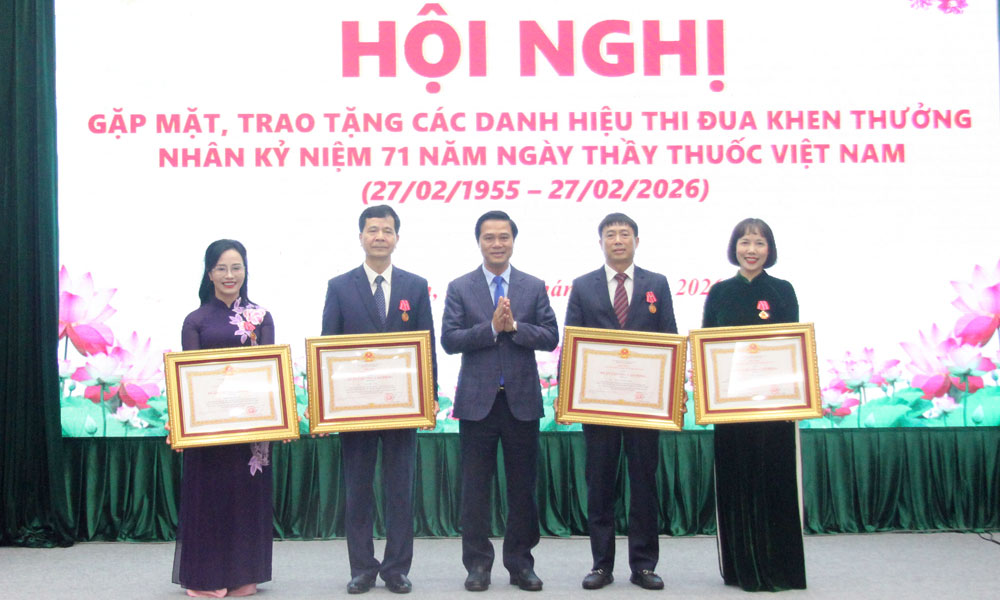 Nhân dịp này, một cá nhân được Ban Thường vụ Tỉnh ủy tặng Bằng khen hoàn thành xuất sắc nhiệm vụ tiêu biểu 5 năm liên tục (2021 - 2025); 4 tập thể được UBND tỉnh trao Cờ đơn vị dẫn đầu phong trào thi đua; 2 cá nhân được tặng danh hiệu Chiến sĩ thi đua cấp tỉnh; 37 tập thể, 20 cá nhân thuộc ngành Y tế có thành tích xuất sắc trong thực hiện nhiệm vụ công tác năm 2024 - 2025 được Chủ tịch UBND tỉnh tặng Bằng khen.