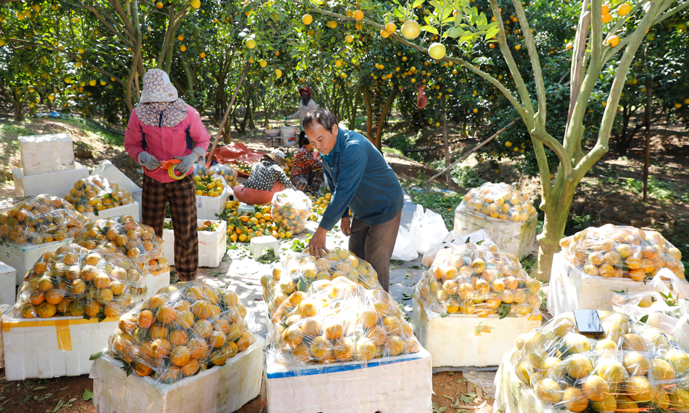 Gia đình ông Nguyễn Hữu Trí, thôn Đồng Quýt, xã Nam Dương thu hoạch cam ngọt. |