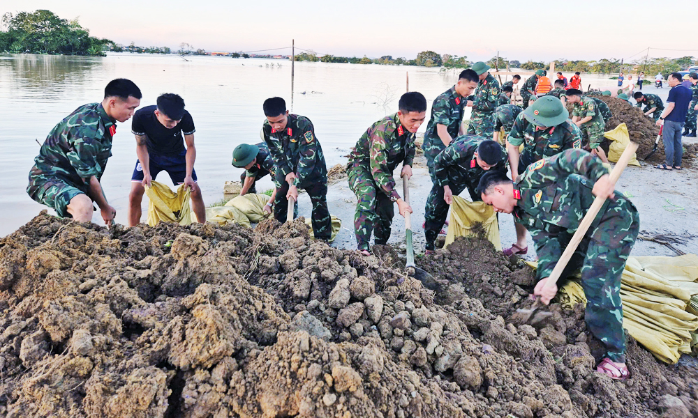 Trước tình cảnh những ngôi nhà ngập sâu, những ngõ xóm đã biến thành dòng sông nhỏ... luôn thấy thấp thoáng bóng áo vàng, áo xanh công an, bộ đội, dân quân, đoàn viên thanh niên và lực lượng tình nguyện ngày đêm túc trực, giúp người dân di dời, vận chuyển nhu yếu phẩm, gia cố, dựng lũy bao tải nâng cao trình chống lũ cho các tuyến đê với mục tiêu cao nhất là bảo vệ an toàn tính mạng và tài sản của Nhân dân.