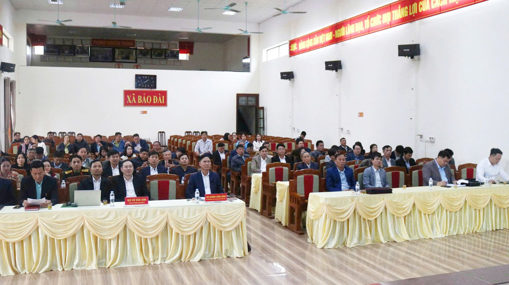 Quang cảnh hội nghị tại điểm cầu xã Bảo Đài. |