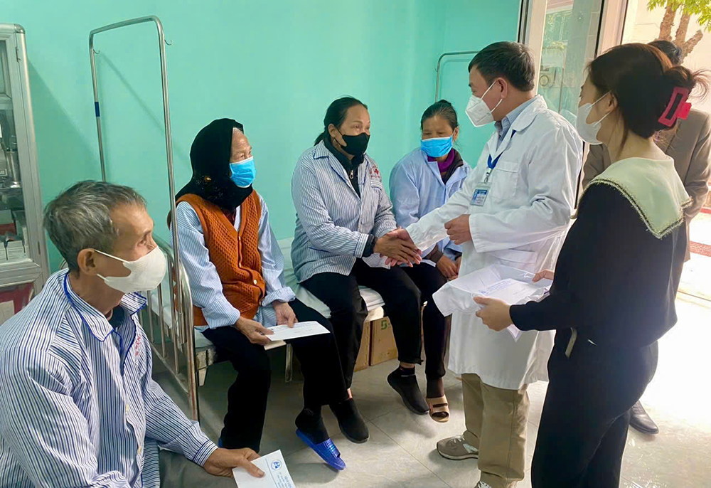 Tại đây, bác sĩ chuyên khoa II Nguyễn Ngọc Thanh, Giám đốc Bệnh viện đã trao 20 suất quà, mỗi suất trị giá 300 nghìn đồng cho các bệnh nhân, góp phần khích lệ, động viên người bệnh vượt qua khó khăn, chiến thắng bệnh tật.