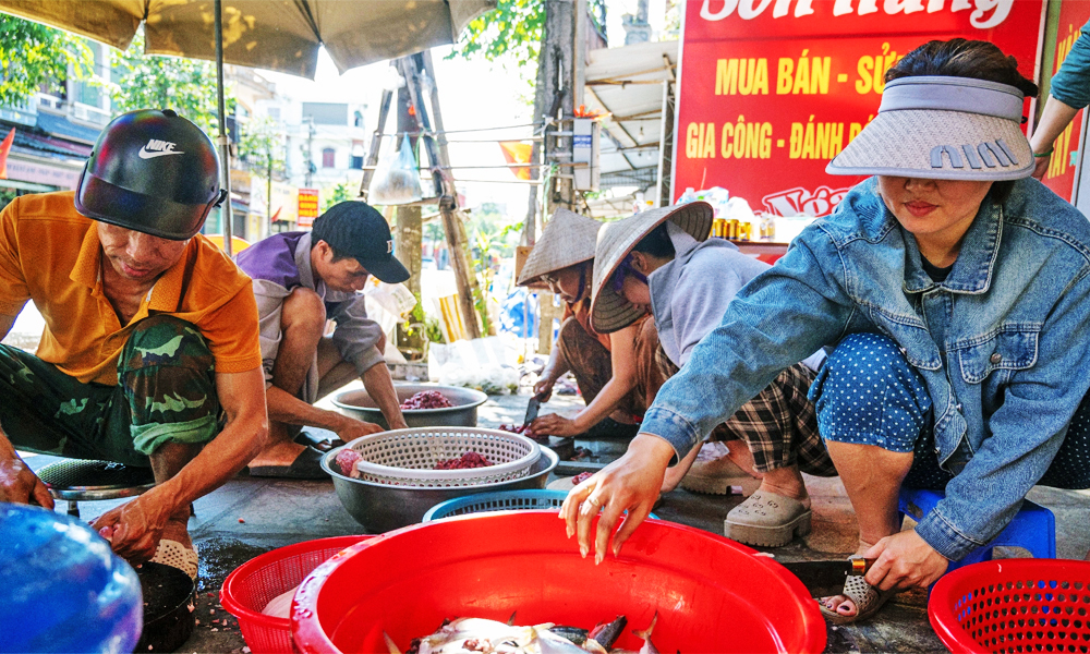 Những bàn tay lam lũ nhưng đầy ấm áp của người dân khu phố Hòa Bình (xã Bố Hạ) tất bật rửa rau, vo gạo, chế biến món ăn...