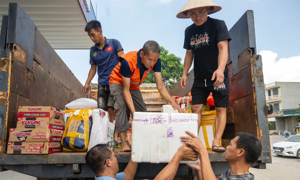 Ngay khi nắm được thông tin nhiều thôn, xóm tại các xã Tiên Lục, Bố Hạ, Hợp Thịnh (Bắc Ninh) ngập sâu và bị cô lập, các đoàn cứu trợ từ khắp mọi miền Tổ quốc đã đến cứu trợ, cấp phát nhu yếu phẩm thiết yếu như mỳ tôm, nước lọc, rau củ quả...
