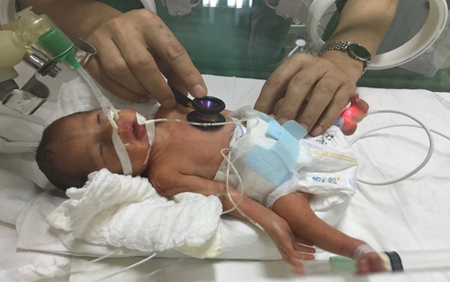 Ngay lập tức, bé được ủ ấm bằng khăn do nữ hộ sinh mang từ bệnh viện. Mẹ cháu bé không chuẩn bị bất cứ đồ đạc gì khi đi sinh. Sau khi xử lý xong, bác sĩ Hùng đã gọi xe cấp cứu của bệnh viện đến chở hai mẹ con về viện.