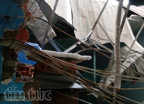 Mảng vữa rơi trúng đầu khiến 3 em học sinh bị thương. |