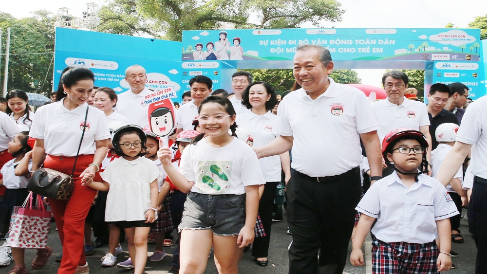 Xử lý nghiêm hành vi người lớn chở trẻ em không đội mũ bảo hiểm khi đi môtô, xe máy, xe đạp điện và các hành vi vi phạm trật tự an toàn giao thông liên quan đến trẻ em.