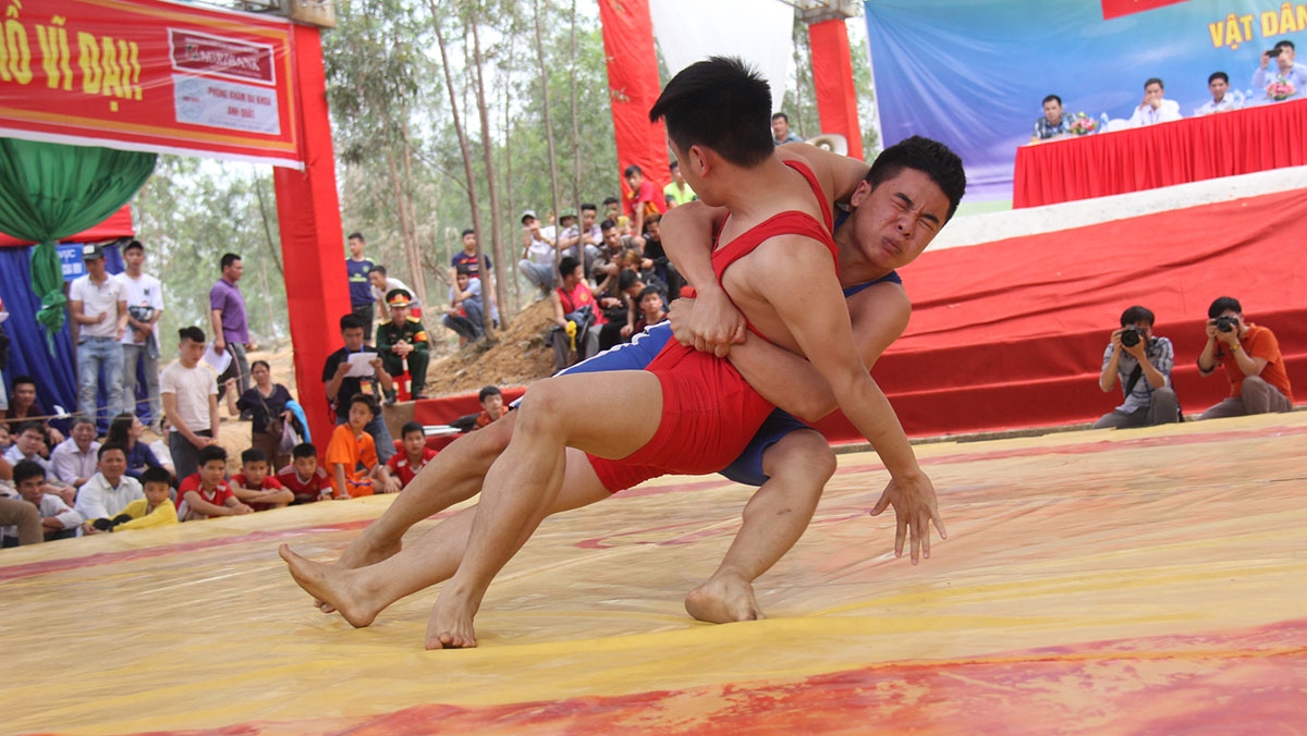 | Tại hội vật ở làng Quang Biểu, các đô đều thể hiện những miếng sở trường như: Nhổ rễ, bốc vanh, bốc tay trong, bốc tay ngoài, bốc đâm đuốc... Khán giả vây kín xung quanh, đứng chật trên triền đê sông Cầu cổ vũ. |
