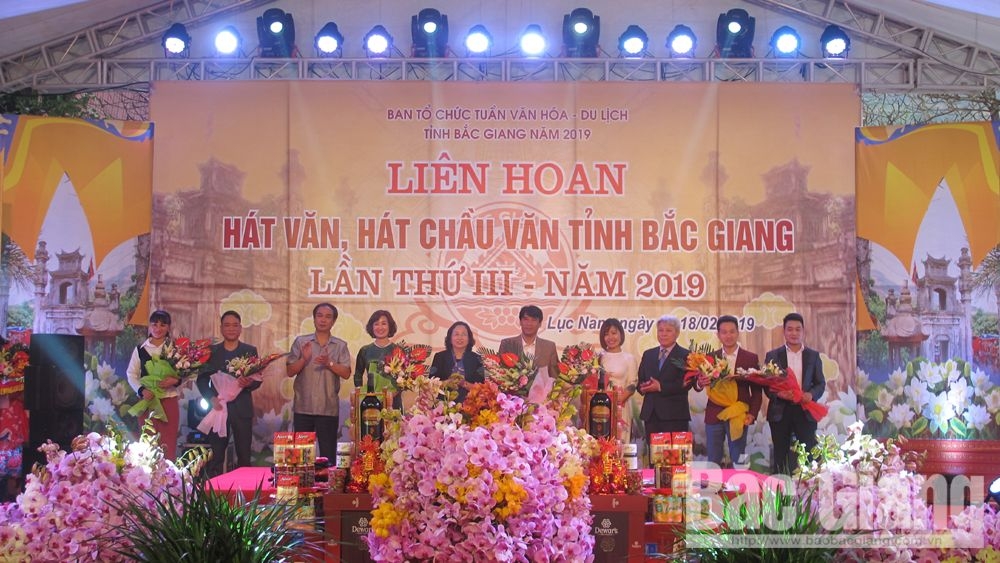 (BGĐT) - Ngày 17-2, tại khu vực Nhà hát văn - Khu du lịch sinh thái Suối Mỡ, xã Nghĩa Phương (Lục Nam), Sở Văn hóa, Thể thao và Du lịch phối hợp UBND huyện Lục Nam tổ chức Liên hoan hát Văn, hát Chầu văn tỉnh Bắc Giang lần thứ III, năm 2019. Đến dự có các đồng chí: Từ Minh Hải, Phó Chủ tịch HĐND tỉnh; Nguyễn Thị Thu Hà, Phó Chủ tịch UBND tỉnh; đại diện lãnh đạo một số sở, ngành tỉnh.
