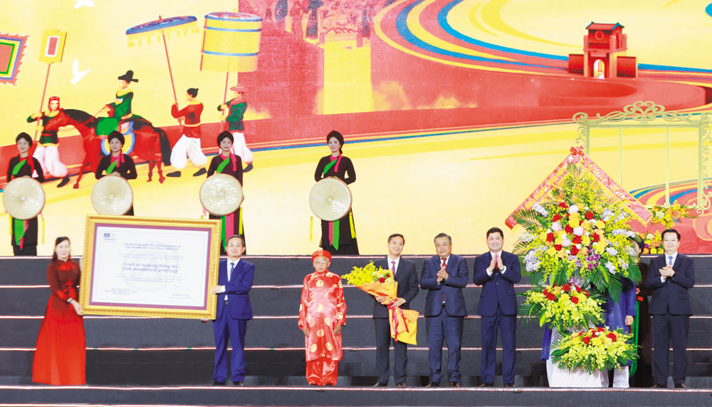 Tại đây, bà Pauline Tamesis đã trao Bằng của UNESCO ghi danh Nghề làm tranh dân gian Đông Hồ vào Danh sách Di sản văn hóa phi vật thể cần bảo vệ khẩn cấp cho đại diện lãnh đạo Đảng, Nhà nước Việt Nam và tỉnh Bắc Ninh. Cùng đó, Quần thể Di tích và Danh thắng Yên Tử – Vĩnh Nghiêm – Côn Sơn, Kiếp Bạc cũng được công bố là Di sản văn hóa thế giới trong niềm xúc động, tự hào của đại biểu và Nhân dân.