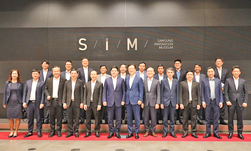 Đoàn công tác tỉnh Bắc Ninh chụp ảnh lưu niệm tại Samsung Innovation Museum (SIM) - nơi trưng bày lịch sử hình thành và phát triển của Tập đoàn Samsung. |