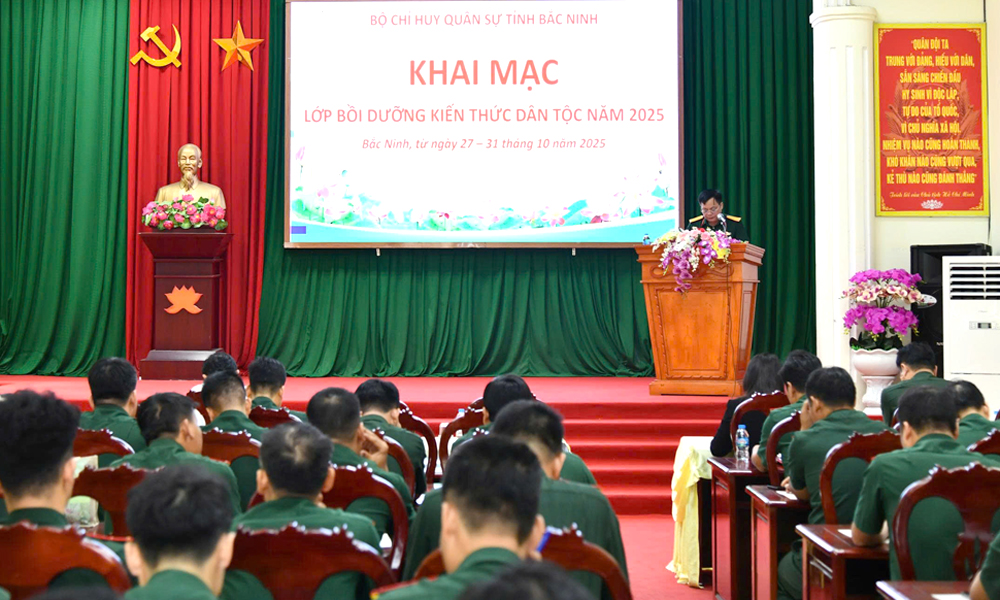 BẮC NINH - Từ ngày 27 đến 31/10, Bộ Chỉ huy quân sự tỉnh Bắc Ninh tổ chức lớp bồi dưỡng kiến thức dân tộc năm 2025 cho 100 cán bộ, sĩ quan, quân nhân chuyên nghiệp các cơ quan, đơn vị trong lực lượng vũ trang tỉnh.