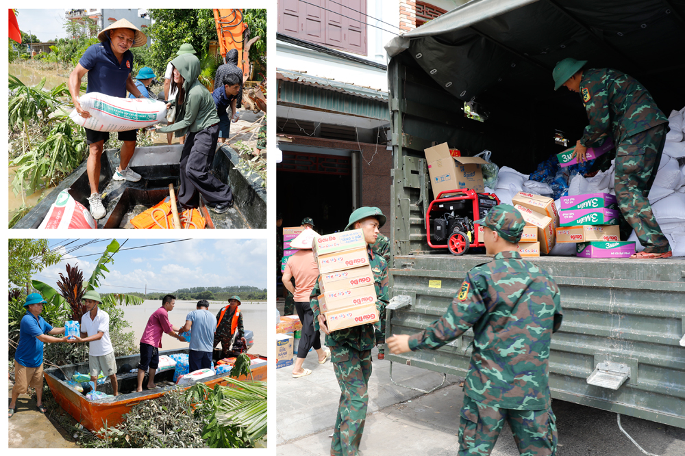 Lực lượng vũ trang và người dân trong, ngoài tỉnh tham gia cứu trợ. |